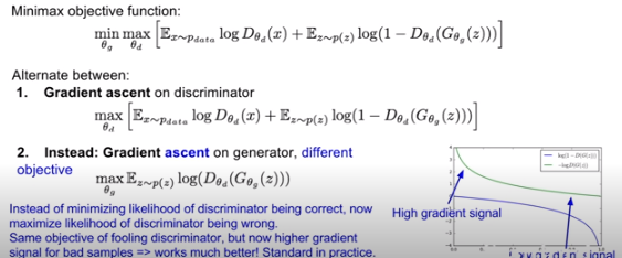 하지만, 실제로는 generator 의 objective function 의 학습이 잘 안된다.