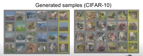 단점: 엄밀히 따지면 PixelRNN / CNN 보다 좋은 최적화 방법은 아니다(likelihood 의 하한을 계산하기 때문에). 흐릿하고 품질이 낮다.