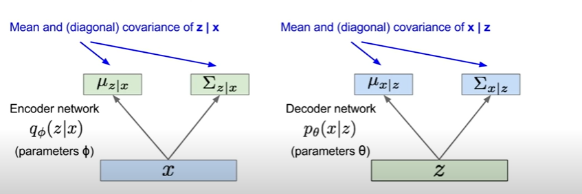 이러한 네트워크들을 encoder network 는 recognition / inference , decoder network 는 generation network 라고 부르기도 한다.
