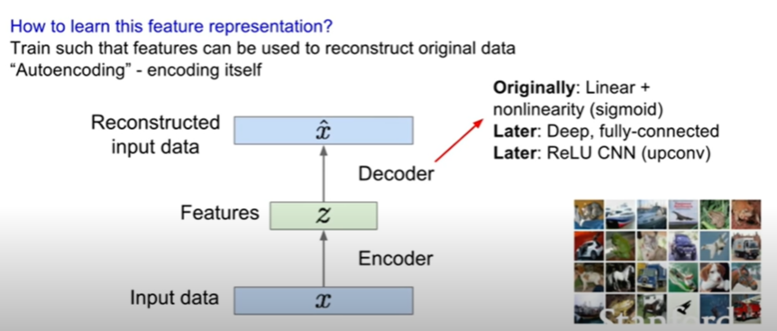 - autoencoder 를 이용하면 라벨이 없는 많은 데이터로부터 양질의 general feature represetation 을 학습할 수 있는 장점이 있다.