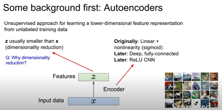 보통 z 는 x 보다 작은 차원을 갖는데(z < x) 이를 dimensionaliy reduction 이라고 한다.