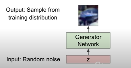 GAN 에서는 입력으로 random noise 벡터(z) 를 받는다. 입력 z 가 Generator Network 를 통과해 training 분포로부터 직접 샘플링된 값을 얻는 것이다.