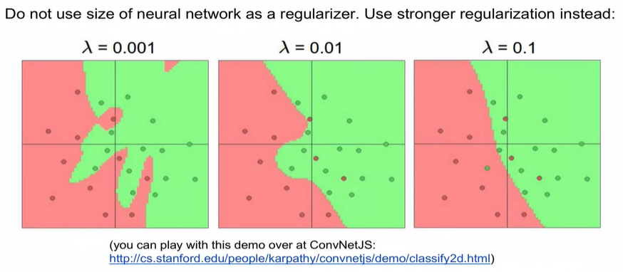 너트워크를 작게 만드는 것이 아닌 레귤러라이제이션 스트렝스는 더 높여주어야 한다.ㅁ
